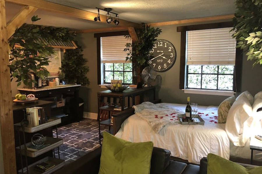At this central boutique house in the Country Club of Orlando, urban chic mixes with childhood dreams. The Little Treehouse, a private 260 sq. ft. second-floor restored 1926 carriage house, is the ideal Central Florida hideaway for two. Five minutes from Downtown Orlando, Amway Arena, Orlando Soccer Complex, and Camping World Stadium, and only 25 minutes from Disney World and an hour from Florida’s gorgeous east and west coast shores.