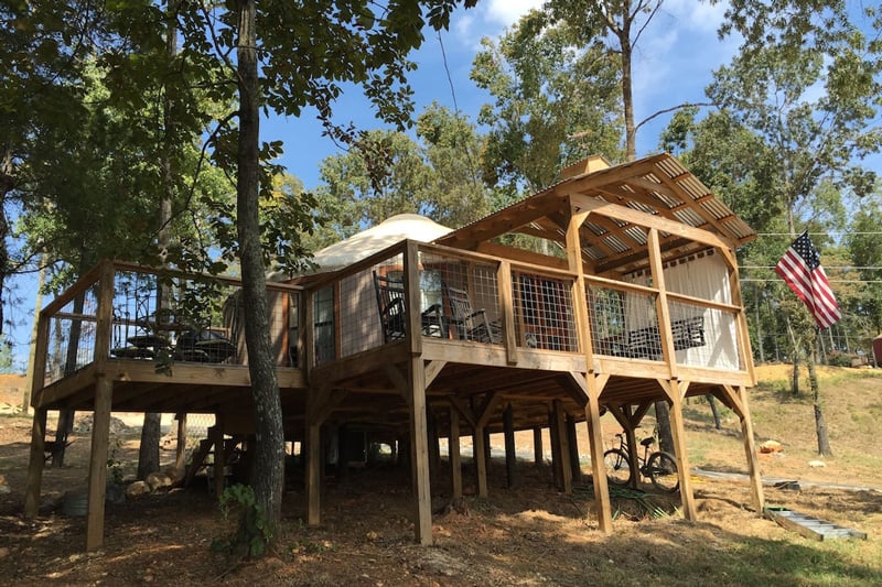 The balcony overlooks the tranquil Logan Martin Lake, making it an ideal area to unwind and take in the scenery. Please keep in mind that no dogs or smoking are permitted inside the yurt for the sake of safety and upkeep.